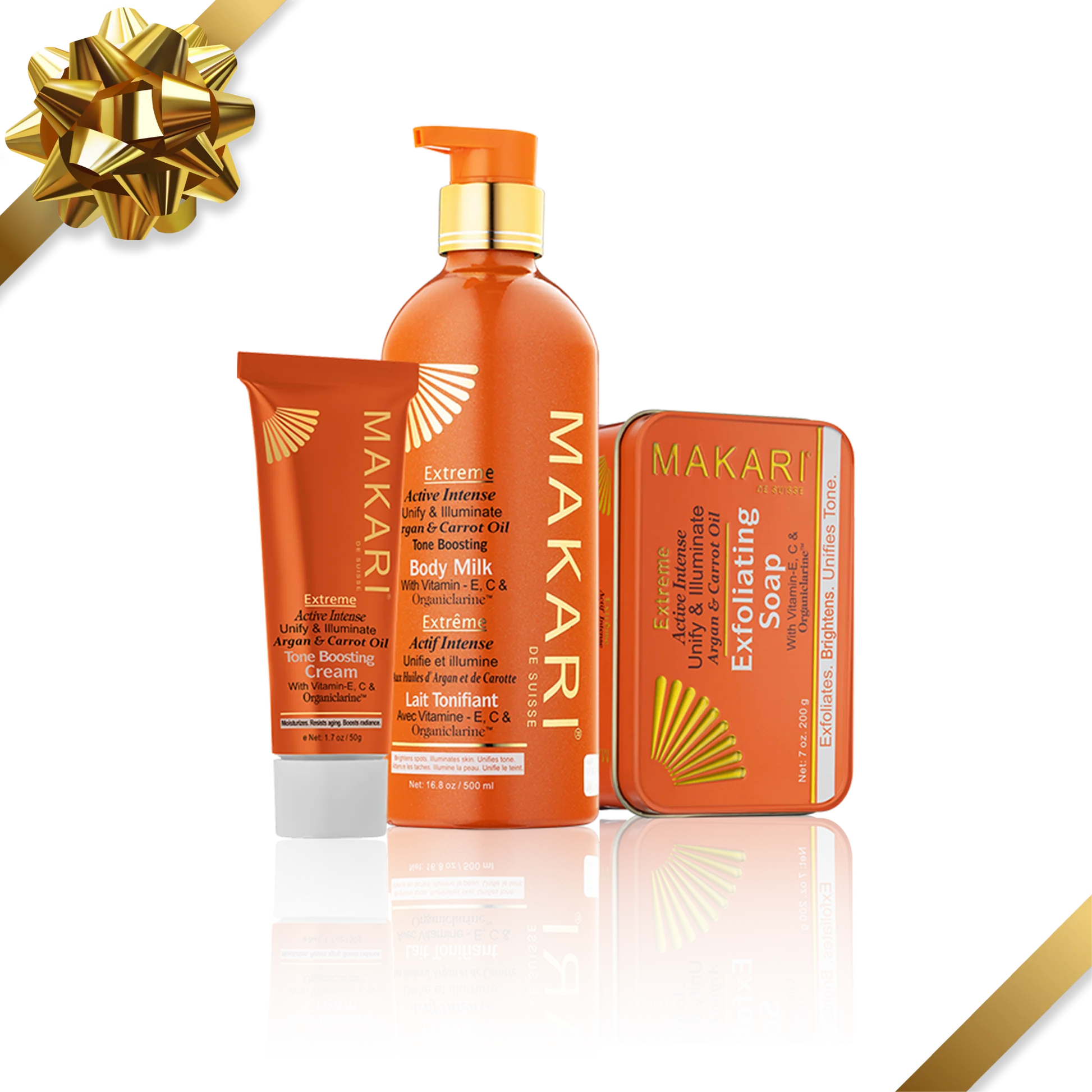 Makari Extreme Argan & Carrot Oil Skin to Love Kit combines our extremely, effective, brightening -alternative illuminating products to reduce hyperpigmentation and reveal skin’s radiance. Recommended for dry, normal, and maturing skin types. The kit includes: Exfoliating Soap: Cleanse and exfoliate face and body Skin Toning Cream for Hyperpigmentation: Moisturize and even tone face and spot treat body Toning Milk: Condition and brighten body Caution: The Extreme collection is not recommended for sensitive skin types or first time users of Makari products. The formulas are very powerful and may cause irritation, inflammation or outbreaks. If irritation, inflammation or outbreaks occur, discontinue use immediately. We recommend first time users to start with the Naturalle or Classic Bright Skin collections before progressing to the Extreme collection.